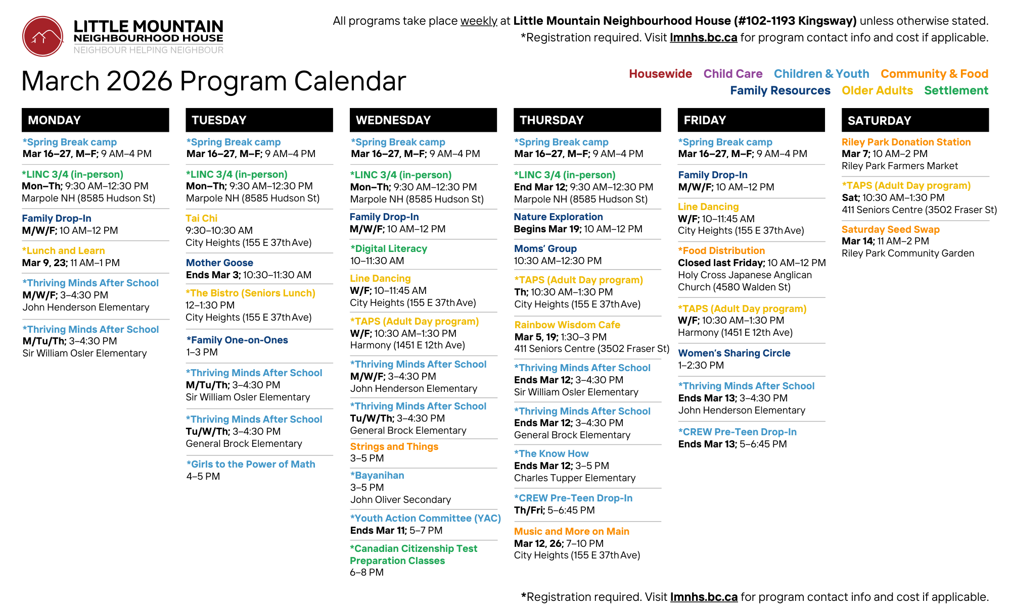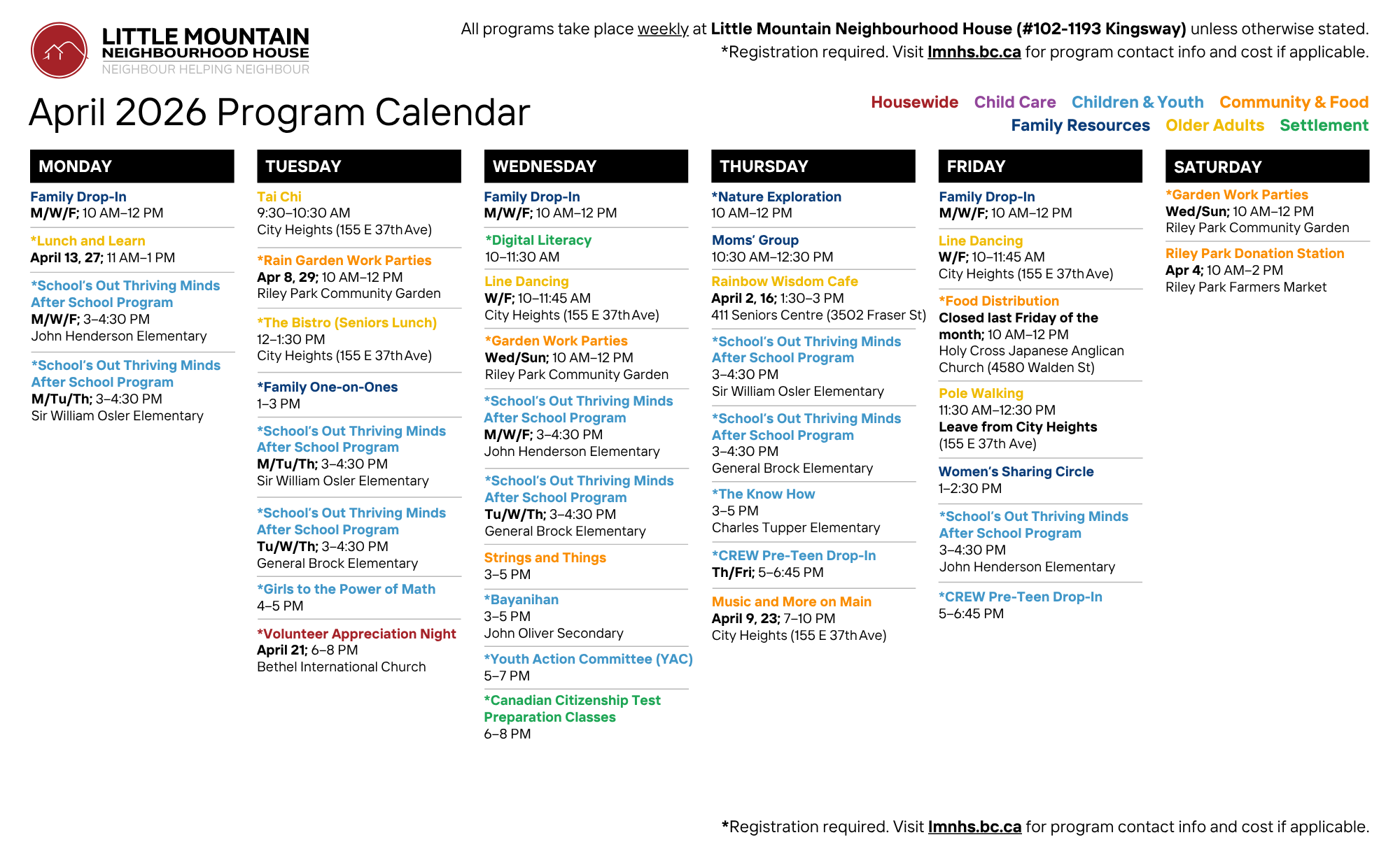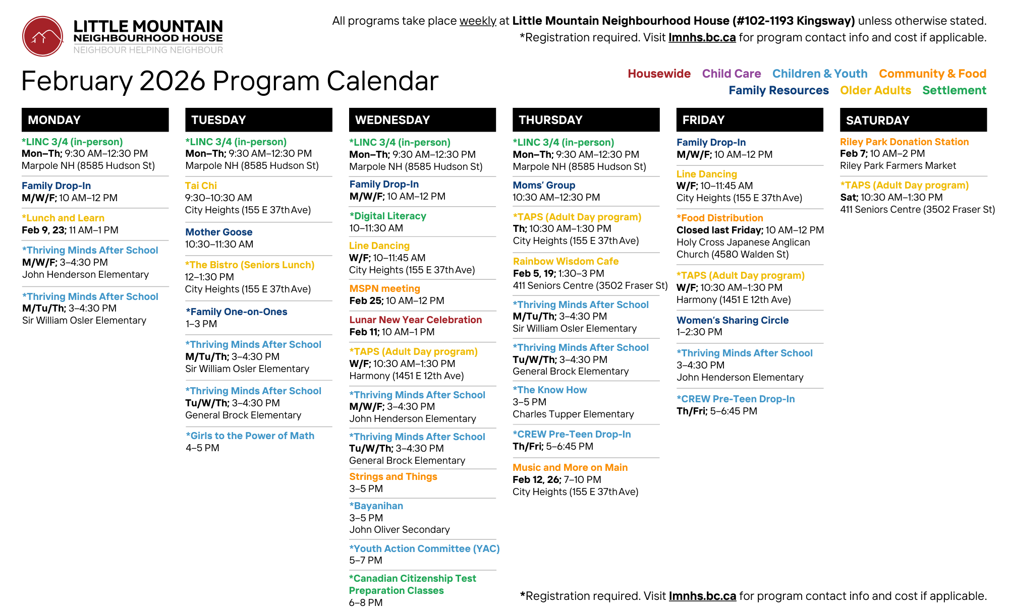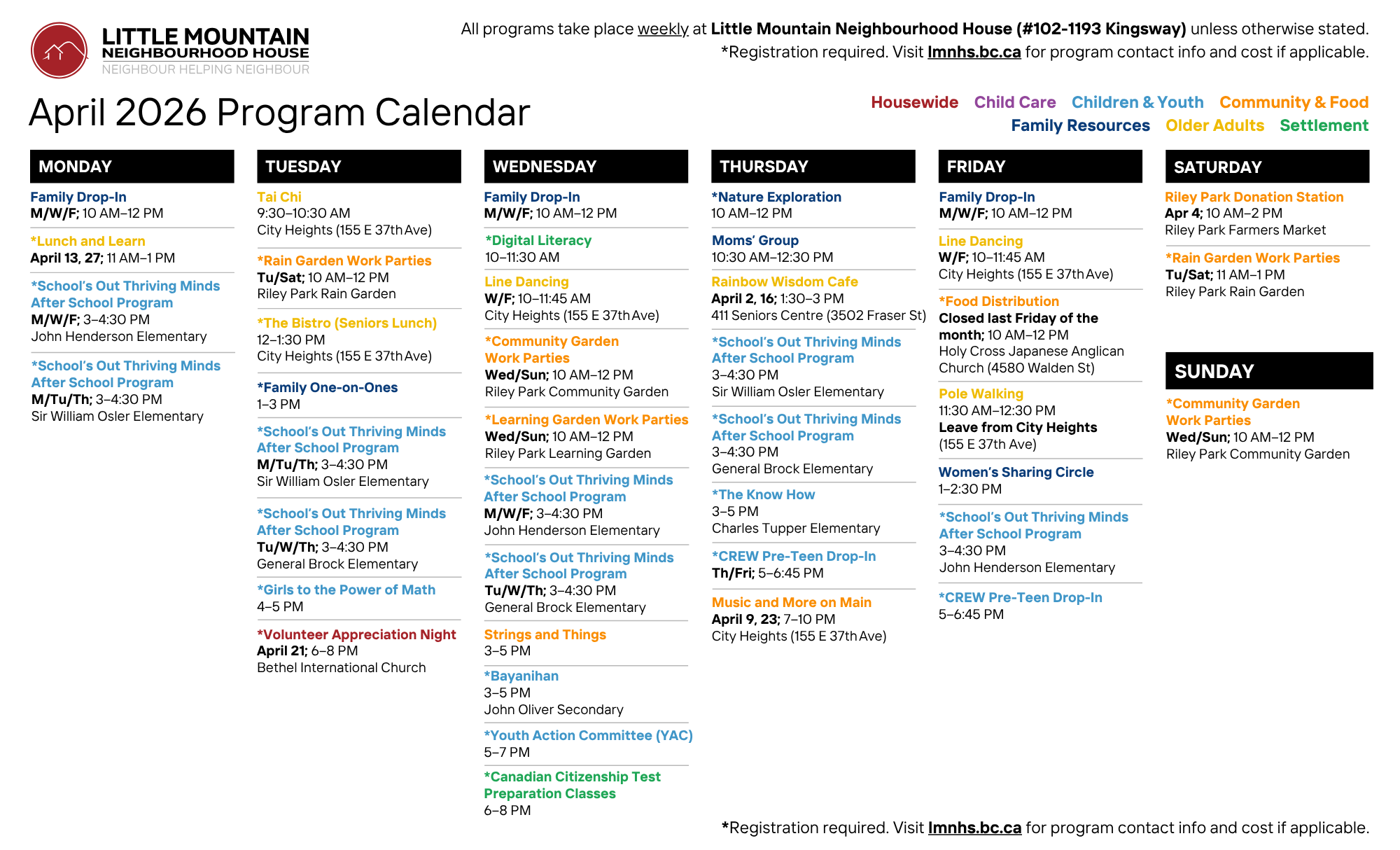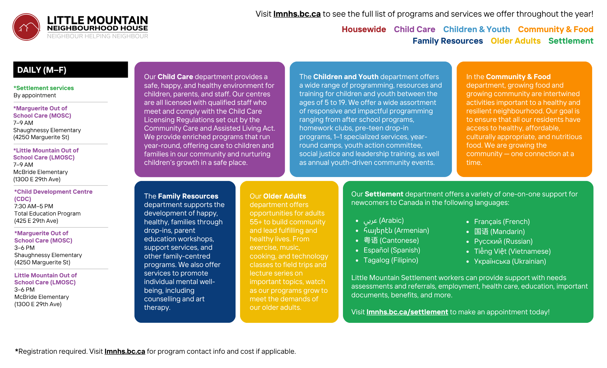 At Little Mountain Neighbourhood House, we value diversity, accessibility, and community engagement.